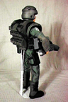 Being a big fan of the movie Starship Troopers, by Paul Verhoeven and the original novel by Robert A. Heinlein, I wanted to design my own action figure. First, we have custom-made Starship Troopers: Mobile Infantry (M.I.) uniforms made to fit the 12-inch, 1997, Classic Collection GI Joe© action figure. They're patterned straight from the actual film-used uniforms I have in my collection. The Codura Nylon fabric I used for Roughneck Joe© is the same material used in the film. The same color of this "waterproof backpack material" was found in a smaller weave called pack-cloth. This smaller weave helps reinforce the 1/6-scale.