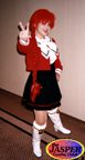 Kimberly has been collecting Magic Knight Rayearth merchandise for over six years, and wanted to cosplay as her favorite character, Hikaru Shidou. I thought it would be wonderful to make her a costume, since it would be a nice addition to her collection - but it would have to be more than that. I would want her to be able to have fun and enjoy wearing it. Kimberly desired an accurate recreation of this character, including the flaming red hair. Wigs, based on anime, manga or game characters, can be especially challenging to design, yet the results are worth the effort. Since Kimberly has short, curly hair, she would not have many character choices (if Kimberly avoided wigs altogether). When Kimberly decided to cosplay as Hikaru, she wanted something that would set her apart from the countless Hikaru cosplayers. We noticed that some cosplayers dyed their hair red, while others wore wigs. Then, we noticed very few cosplayers made Hikarus long pony tail past the shoulders. In the illustrations, Hikarus pony tail clearly goes past the waist (with perpetual wind). That's it! So, we carefully shopped around for the right color wig - in flaming red. In order to make the pony tail long enough, we had to buy two wigs. We were very pleased with the results, and amazed at how many people thought it was Kimberly's real hair.