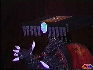 Kimberly and I decided to join forces and perform Z-RAM Bytes the Dust in 1997. This would be an unusual and daring performance, combining two characters from completely different series (yes, a cross-over skit). A sweet, innocent schoolgirl fighting a big, evil monster. Okay, we've heard this one before, BUT we wanted to twist this tale. As Eméril would say: Kick it up a notch... We decided that Hikaru would find the strength to decapitate and disembowel her opponent, without a sword. She was on a quest.... searching for her little marshmallow, Mokona - who was munched up by Z-RAM. Remember the tale of Peter and the Wolf? Mokona was tucked away somewhere in 60-feet of Pepto-pink intestines, tightly wound up in Z-RAMs chest cavity.